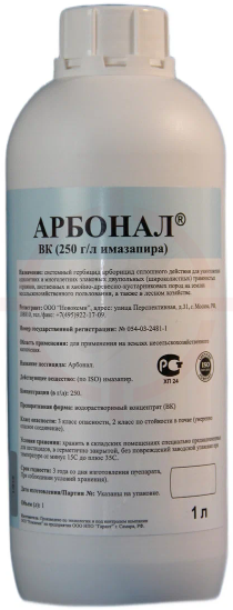Арбонал ВК - гербицид общеистребляющего действия для уничтожения всех видов нежелательной растительности. Препарат применяется только на землях несельскохозяйственного пользования и обладает длительным эффектом сдерживания повторного отрастания сорняков.