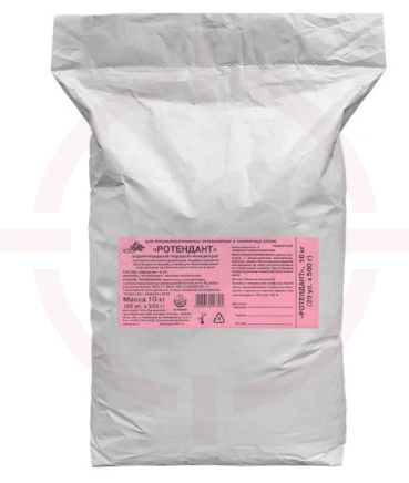 Ротендант на тальке - концентрированный родентицид в форме порошка розового цвета. Применяется для изготовления отравленных приманок, а так же для тампонирования нор.