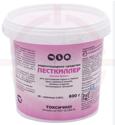 Песткиллер - готовая родентицидная приманка в виде тесто-брикетов, окрашенных в яркий цвет.