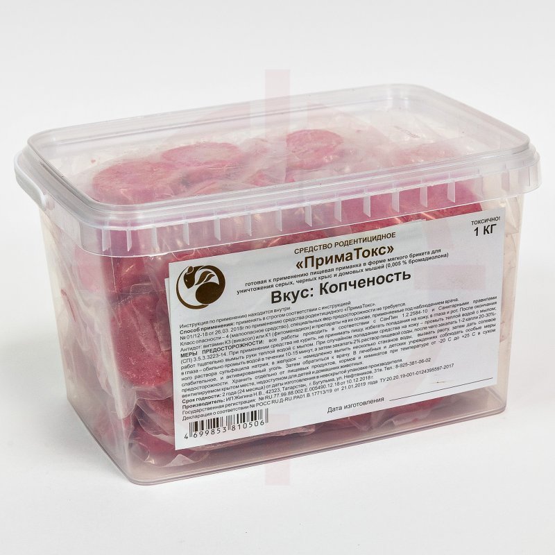 Приматокс - (Копчёность) приманка для уничтожения грызунов — средство для мониторинга и отлова насекомых и грызунов. Позиция относится к группе «Дератизация/Готовые приманки» и подходит для применения в профессиональной сфере и в бытовых условиях.