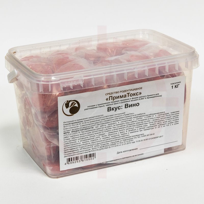 Приматокс - (Винный) приманка для уничтожения грызунов — средство для мониторинга и отлова насекомых и грызунов. Позиция относится к группе «Дератизация/Готовые приманки» и подходит для применения в профессиональной сфере и в бытовых условиях.