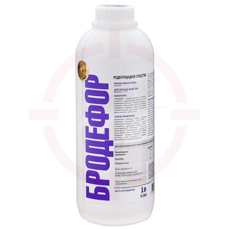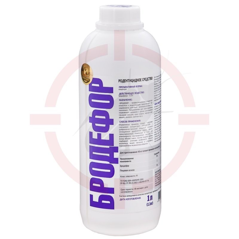 Бродефор – это эффективный родентицид, нашедший широкое распространение в практике служб, специализирующихся на дератизационной деятельности. Препарат выпускается в форме концентрированной эмульсии и предназначен для приготовления отравленной приманки, поедание которой обеспечивает гибель грызунов на 3-8 сутки.