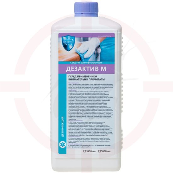 Средство Дезактив-М обладает антимикробной активностью в отношении грамотрицательных и грамположительных бактерий (включая возбудителей туберкулеза, легионеллеза), вирусов, грибов родов Кандида и Трихофитон, а также моющими свойствами.