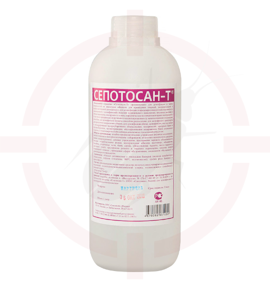 «Сепотосан-Т» - обладает антимикробной активностью в отношении различных грамотрицательных и грамположительных микроорганизмов, возбудителей туберкулеза, вирусов (парентеральные гепатиты, полиомиелит, ВИЧ), грибов рода Кандида и Трихофитон (дерматофитий), возбудителей внутрибольничных инфекций.