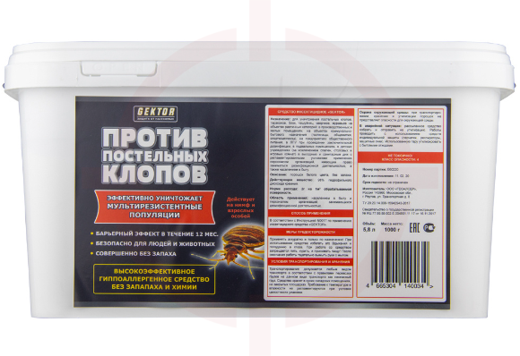 Средство инсектицидное Гектор (GEKTOR) предназначено для уничтожения постельных клопов, муравьев, блох, сверчков, чешуйниц и др. нелетающих насекомых. Используется дезинсекторами и населением в быту. В помещениях различных категорий, в отсутствии взрослых и детей. Отлично подходит для истребительных и профилактических мероприятий.