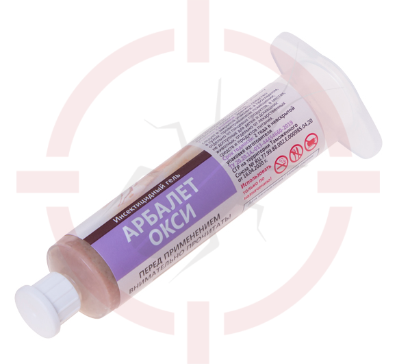 Арбалет Окси — инсектицидный препарат в виде гелевой пищевой приманки, который обладает густой консистенцией. Действующее вещество — индоксакарб 0,6% кишечного и контактного действия из нового класса инсектицидов - Оксидиазины. В составе геля Арбалет Окси добавлен пищевой аттрактант, который привлекает тараканов, мух, муравьев и других синантропных насекомых.