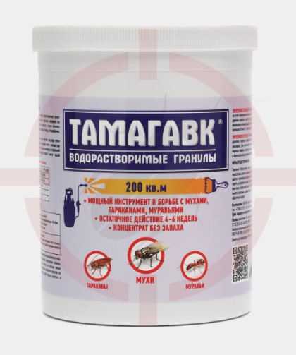 "Тамагавк"- инсектицидное средство в форме водорастворимых гранул предназначено для уничтожения синантропных насекомых (мух, тараканов, муравьев) на объектах различных категорий.