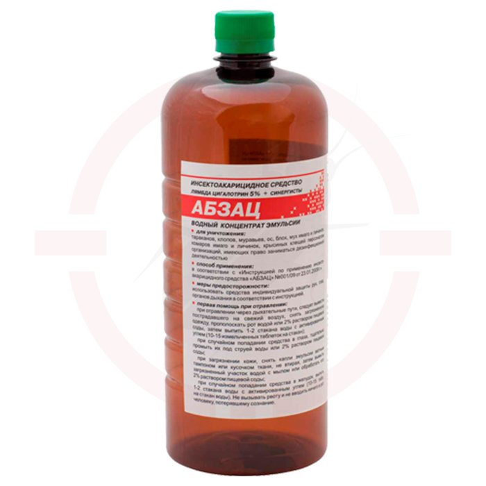 Абзац – инсектицидное средство в виде водного концентрата эмульсии, предназначенное для устранения различных видов насекомых.