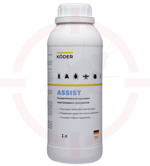 Ассист - Koder синергитический адьювант ПАВ 25% к.э. пиперонилбутоксида — концентрированное дезинфицирующее средство для обработки различных поверхностей. Позиция относится к группе «Дезинсекция/Инсектицидные концентраты, лаки» и подходит для применения в профессиональной сфере и в бытовых условиях.