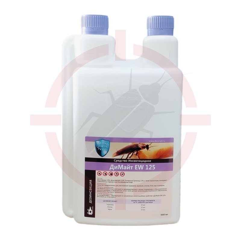 ДиМайт EW 125 - инсектицид, концентрат эмульсии на масляной основе — концентрированное дезинфицирующее средство для обработки различных поверхностей. Позиция относится к группе «Дезинсекция/Инсектицидные концентраты, лаки» и подходит для применения в профессиональной сфере и в бытовых условиях.