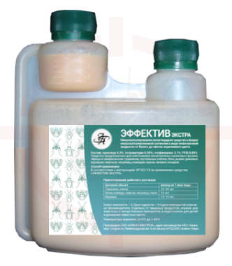 Эффектив-экстра - микрокапсулированное инсектицидное средство, предназначенное для уничтожения синантропных насекомых (рыжих, черных и американских тараканов, постельных клопов, блох, рыжих домовых муравьев, сверчков, чешуйниц, кожеедов, пауков, личинок комаров) организациями, занимающимися дезинфекционной деятельностью на объектах различного назначения.
