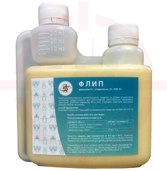 Инсектицидное средство Флип - микрокапсулированный концентрат суспензии. Представляет собой непрозрачную жидкость от белого до светло-коричневого цвета.