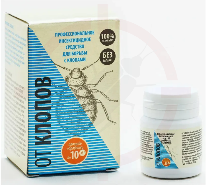 От клопов - инсектицидное средство в виде мелкодисперстного водорастворимого порошка голубого цвета. Не имеет запаха.
