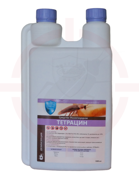 Тетрацин - инсектицид от клопов, тараканов, концентрат эмульсии — концентрированное дезинфицирующее средство для обработки различных поверхностей. Позиция относится к группе «Дезинсекция/Инсектицидные концентраты, лаки» и подходит для применения в профессиональной сфере и в бытовых условиях.