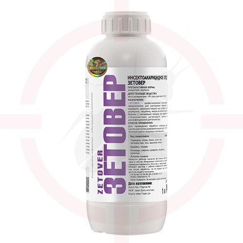 ЗЕТОВЕР - профеccиoнальный инсектоакарицидный концентрат. Предназначен для уничтожения cинантрoпных насекомых (тараканы, клопы, муравьи, мухи и др.) на объектах различных категорий; для борьбы с иксодовыми клещами при обработке природных стаций, специалистами организаций, имеющих правo заниматься дезинфекционной деятельнoстью.
