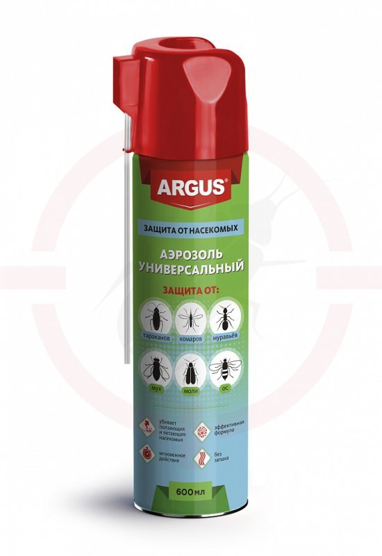 ARGUS - универсальный аэрозоль от всех насекомых (тараканов, муравьев, мух, комаров, ос, мошек, моль, кожееда, блох, клопов) .