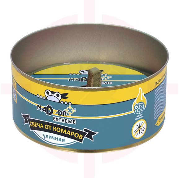 Свеча антимоскитная Nadzor EXTREME на эфирных маслах обеспечивает защиту от комаров и других насекомых в течение 6 часов горения.