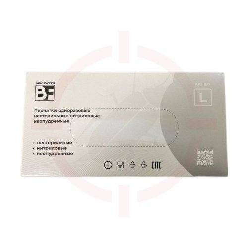 Ben Fatto - одноразовые гигиенические перчатки из высококачественного нитрила. Материал полностью облегает руки, сохраняя тактильные ощущения. Перчатки применяются в медицинских учреждениях, салонах, парикмахерских для обеспечения должного уровня гигиены. Защищают руки от грязи и воздействия химических веществ.